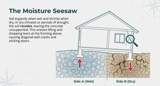 This one is often overlooked in dry climates. Soil shrinks and expands with moisture, and if it shrinks too much around your foundation, it can leave the foundation unsupported. During dry spells, running a soaker hose a few feet away from the foundation can help maintain consistent moisture levels in clay-heavy soils.