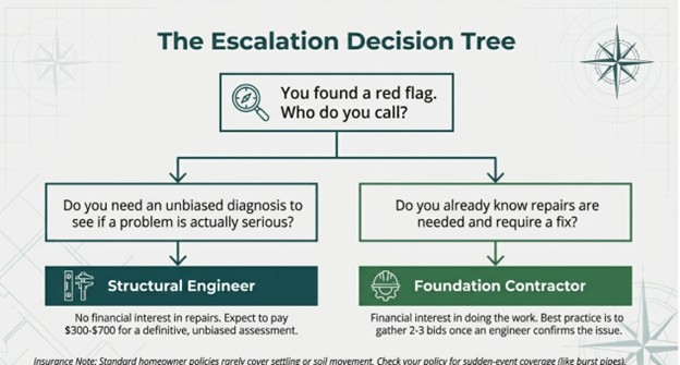A structural engineer is the right first call when you need an honest, unbiased assessment. They have no financial interest in recommending repairs and can tell you definitively whether a problem is serious or not. Expect to pay $300 to $700 for a full structural inspection.